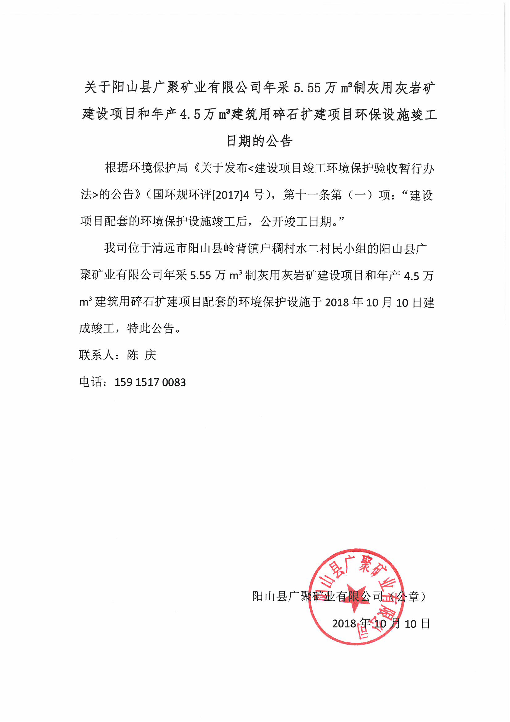 上一頁:陽山縣廣聚礦業(yè)有限公司年采5.55萬m3制灰用灰?guī)r礦建設(shè)項目和年采4.5萬m3建筑...