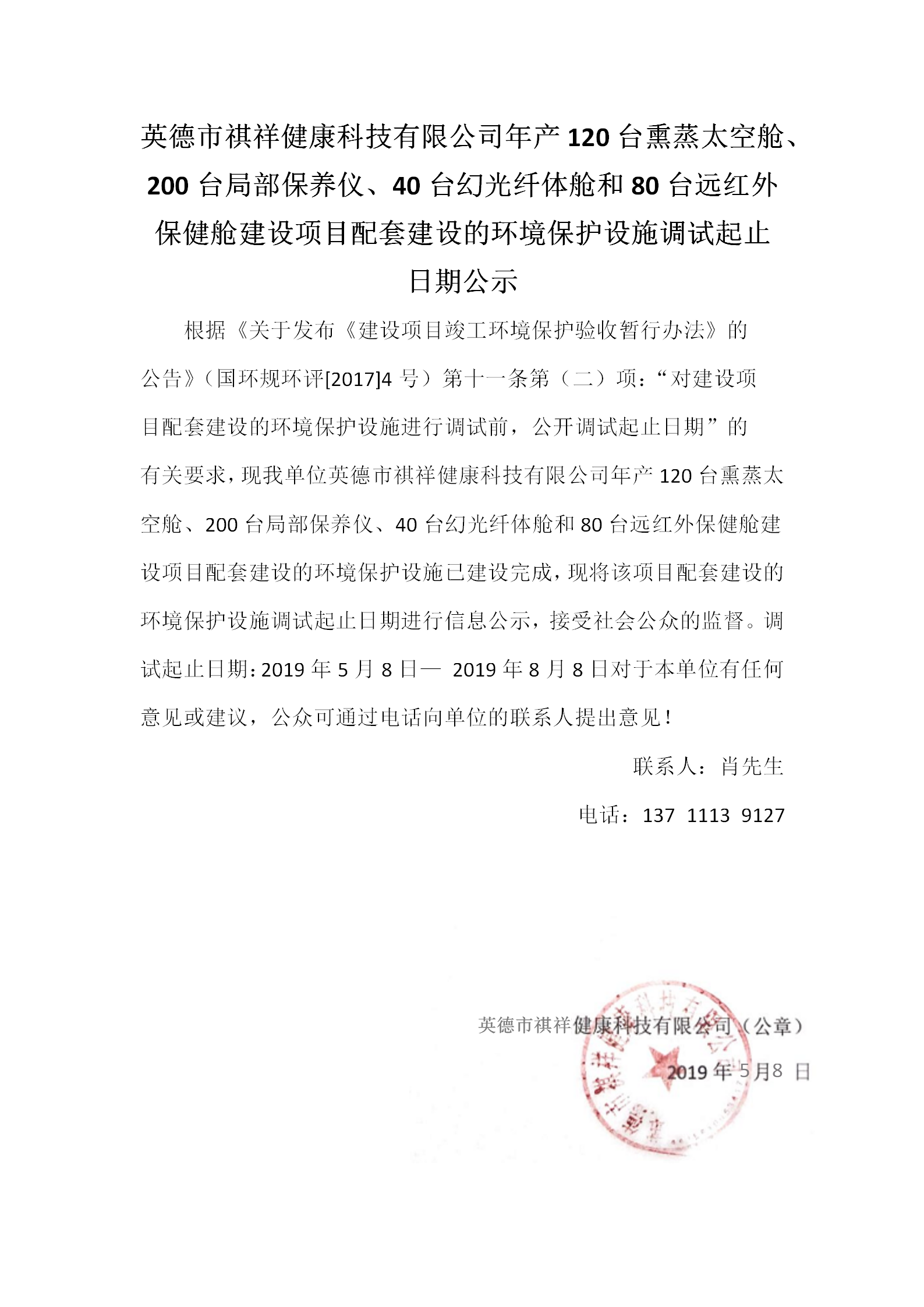 下一頁: 英德市祺祥健康科技有限公司年產(chǎn)120臺熏蒸太空艙、200臺局部保養(yǎng)儀、40臺幻光...
