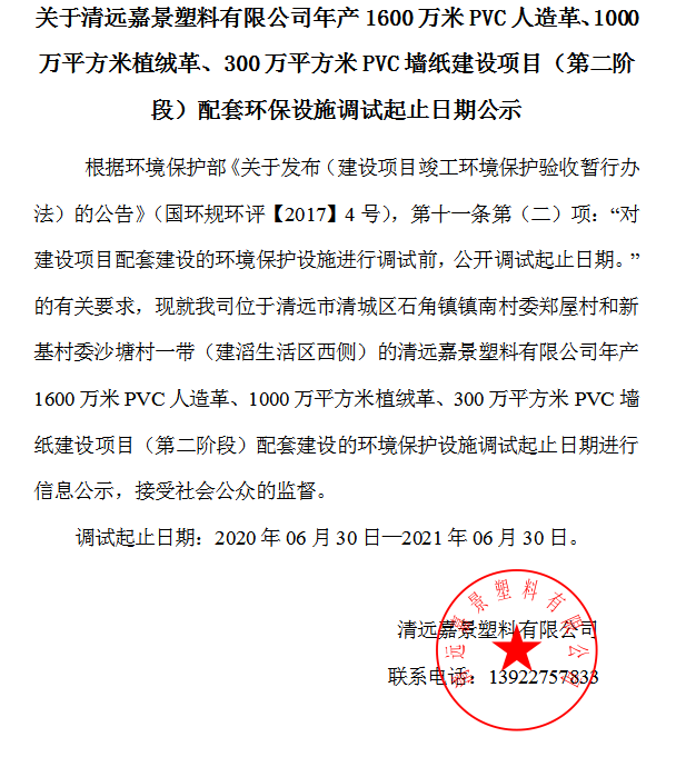 下一頁: 關(guān)于清遠(yuǎn)嘉景塑料有限公司年產(chǎn)1600萬米PVC人造革、1000萬平方米植絨革、300萬平...
