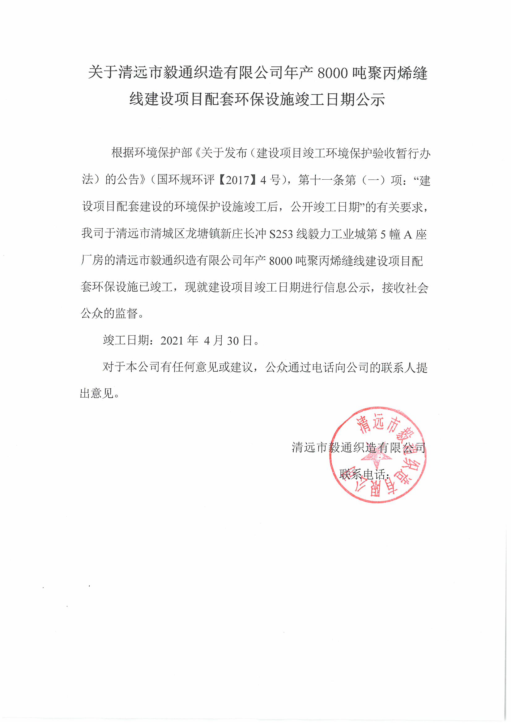 上一頁:關(guān)于清遠市毅通織造有限公司年產(chǎn)8000噸聚丙烯縫線建設(shè)項目配套環(huán)保設(shè)施調(diào)試...