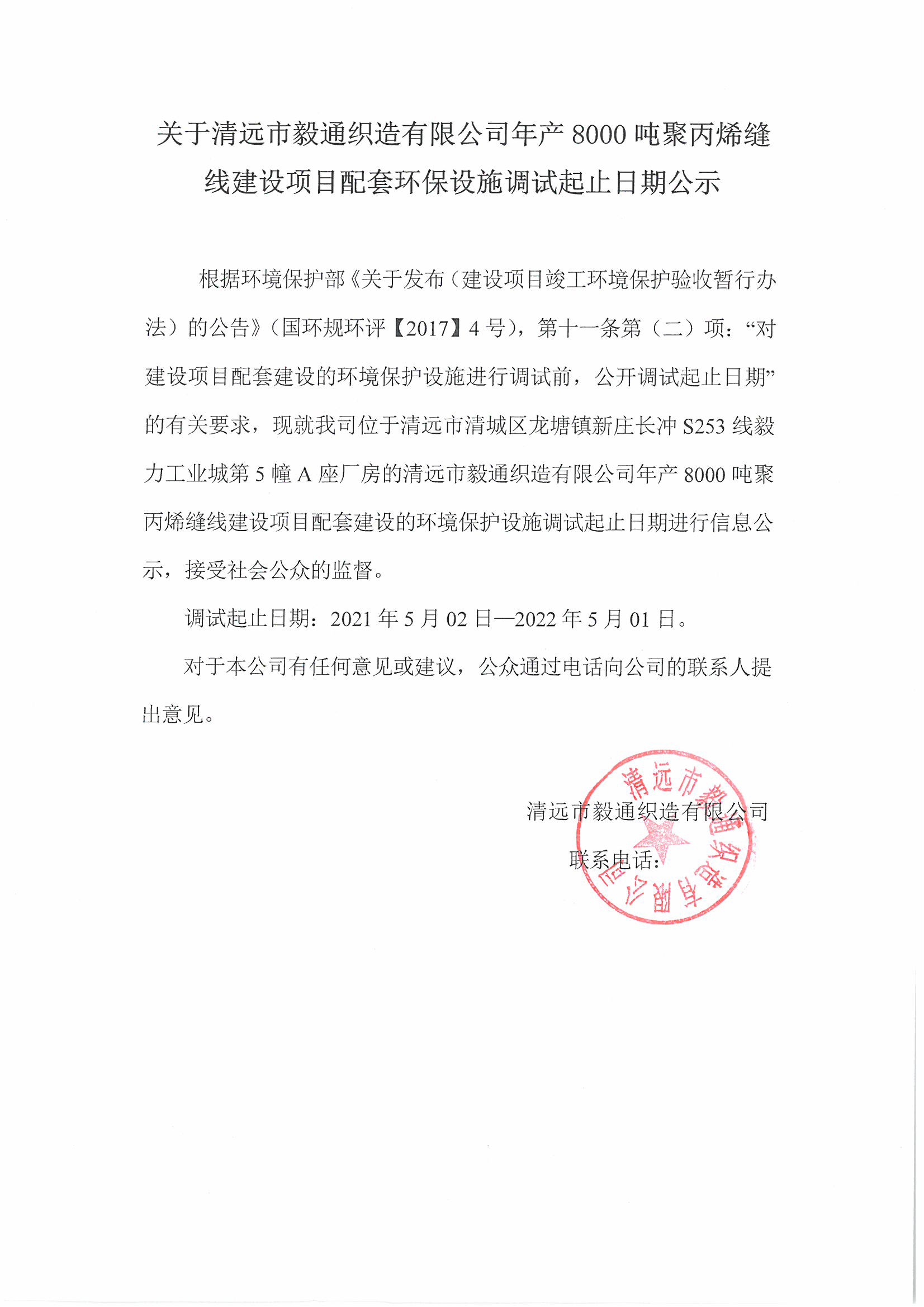 下一頁(yè): 關(guān)于清遠(yuǎn)市毅通織造有限公司年產(chǎn)8000噸聚丙烯縫線建設(shè)項(xiàng)目配套環(huán)保設(shè)施竣工...