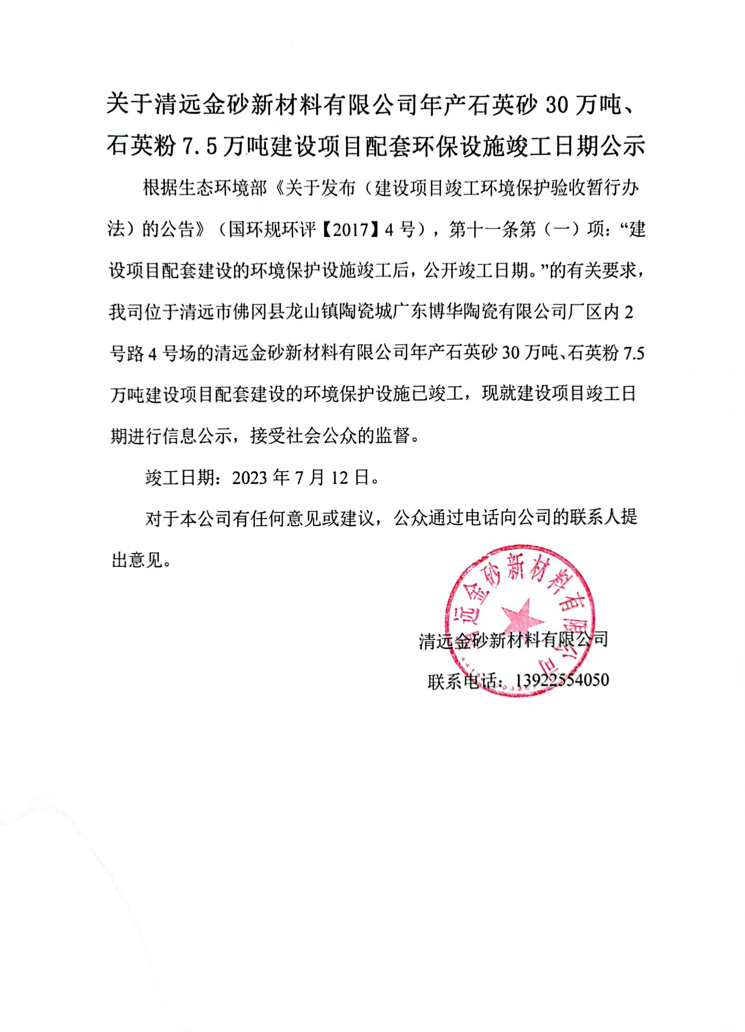 上一頁(yè):關(guān)于清遠(yuǎn)金砂新材料有限公司年產(chǎn)石英砂30萬噸、石英粉7.5萬噸建設(shè)項(xiàng)目配套環(huán)...